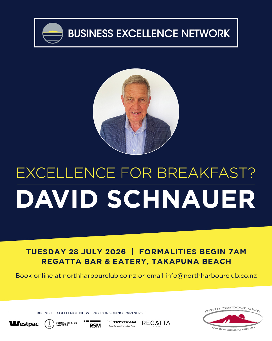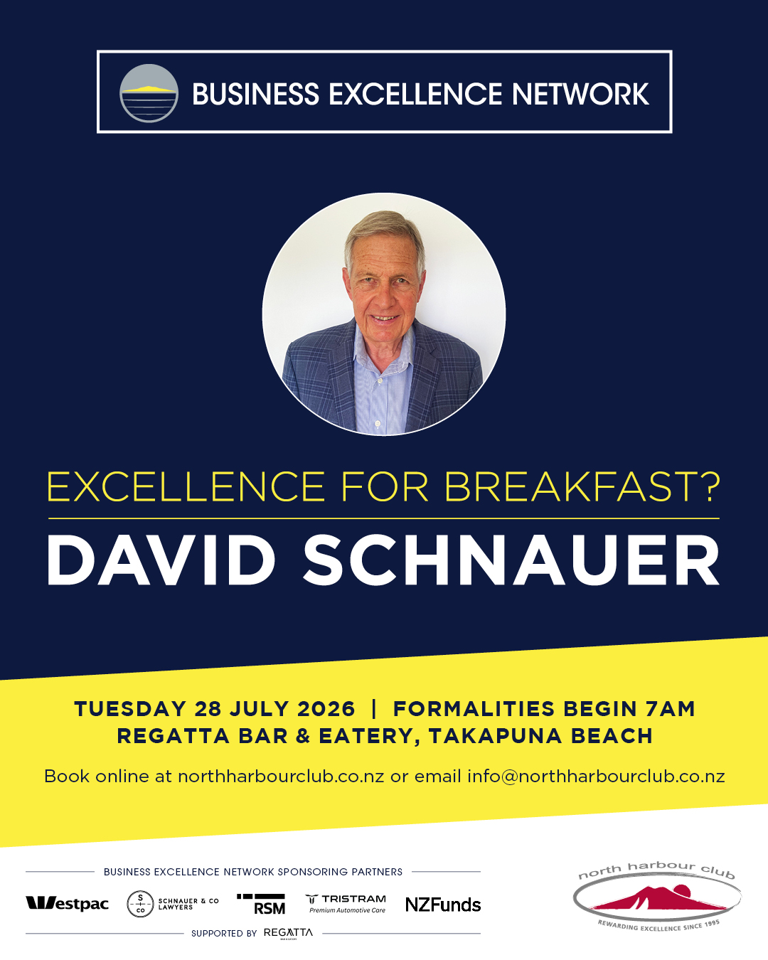 This is a rare opportunity to hear a thoughtful, independent perspective on the economic issues likely to influence the 2026 election cycle, while connecting with fellow business leaders from across Auckland’s North Shore. Expect an engaging morning of ideas, conversation, and networking in a relaxed, welcoming setting at Regatta Bar & Eatery in Takapuna.